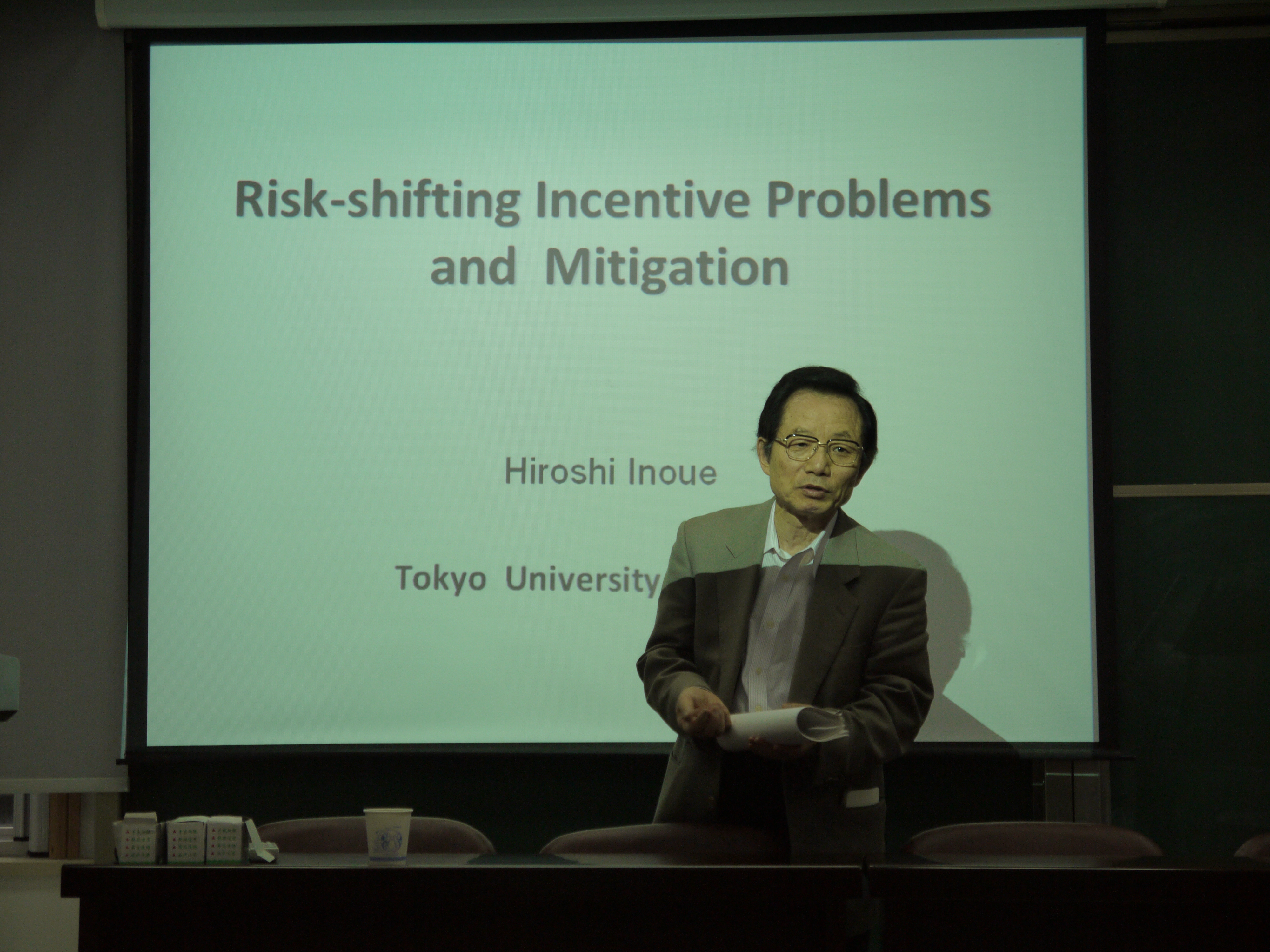 5月17日下午,Hiroshi Inoue教授在中心学术报告厅作了题为“ Risk-shifting Incentive Problems and Possible Ways for Mitigation”的学术报告。报告会由金融工程研究中心副主任岳兴业教授主持,中心全体教师和研究生参加了报告会。报告会后,Hiroshi Inoue教授与中心的研究生进行了互动交流。