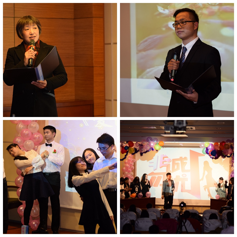 我们载歌载舞,用美好的歌声唱出新年的希望,用精彩的节目编排新年的期待。祝愿中心全体师生在崭新的2016年勇攀高峰,再创辉煌。