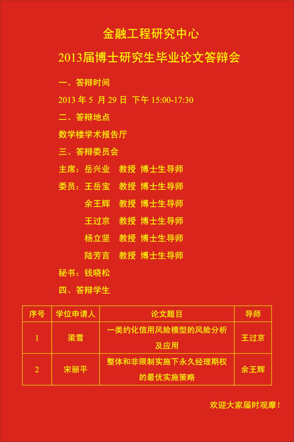 金融工程研究中心2013届博士研究生毕业论文答辩会