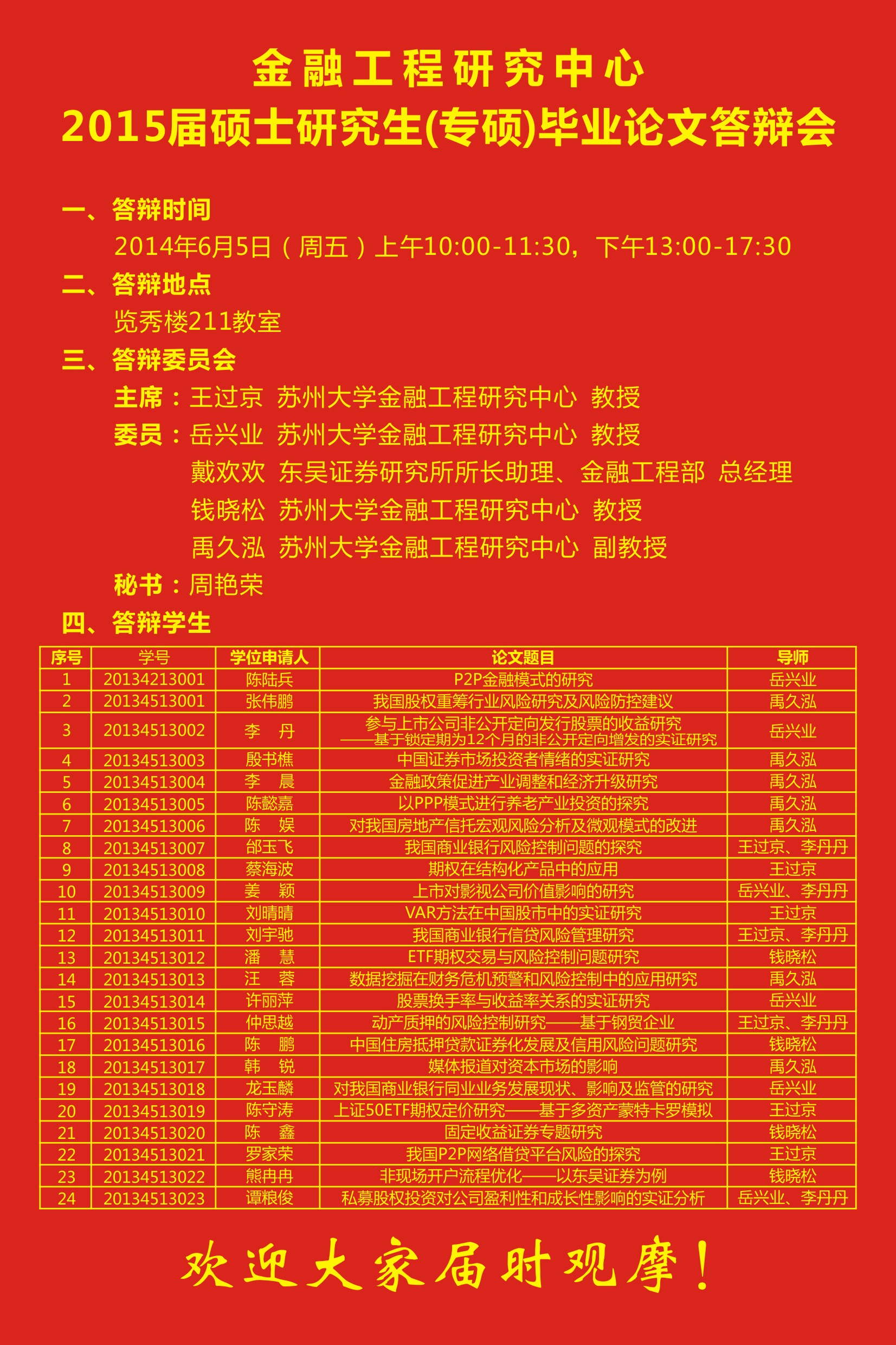 金融工程研究中心2015届专业硕士研究生毕业论文答辩会