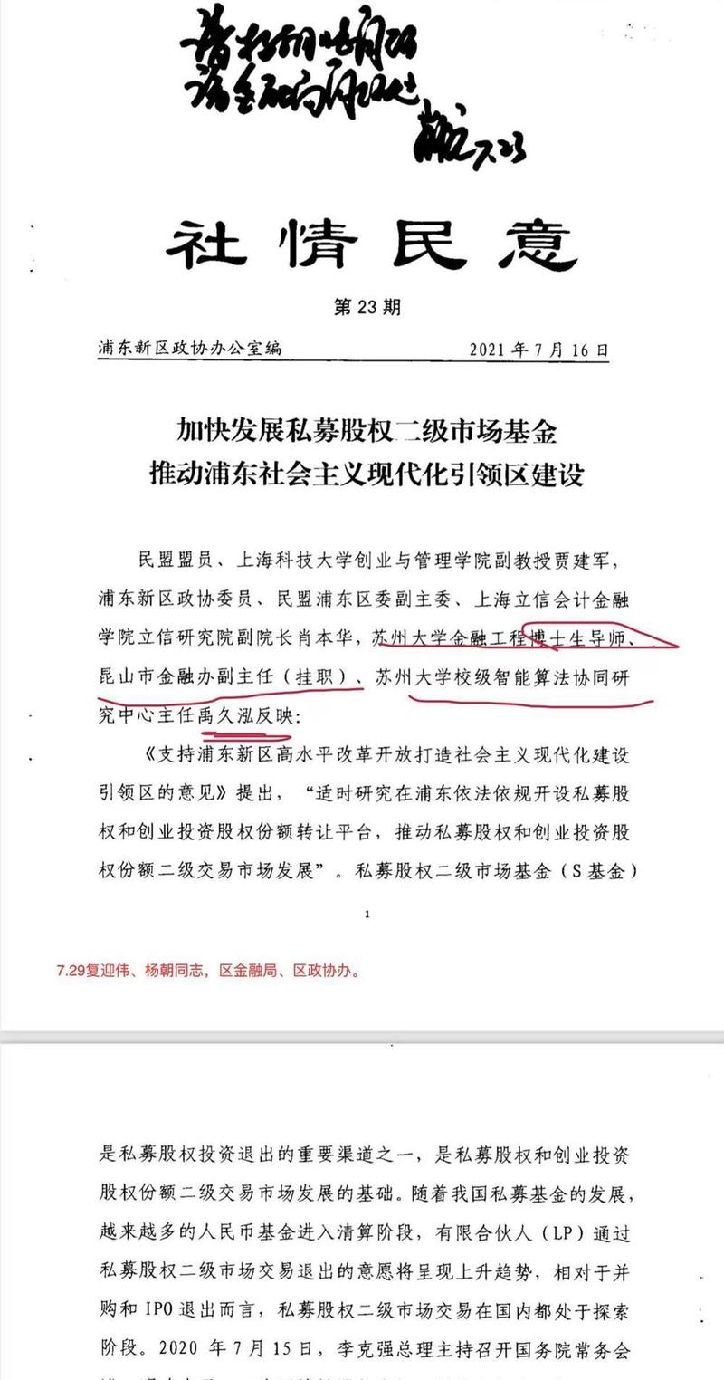 由苏州大学金融工程中心禹久泓老师等人执笔S基金政策建议,7月得到了“时任上海市委常委翁祖亮同志”批复、签发,为私募股权S基金在上海的落地添砖加瓦。11月29日,中国证监会批复了在上海开展私募股权S基金,试点股权投资和创业投资份额转让。